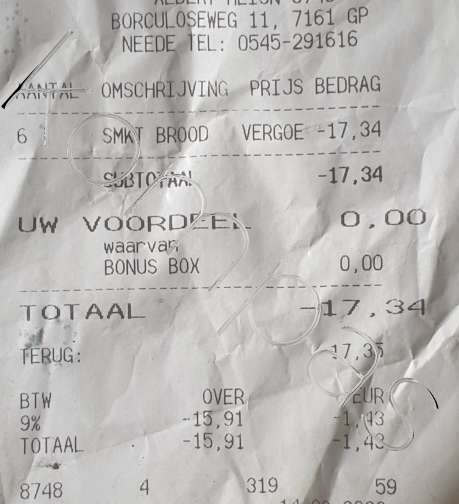 Als u 1 van de 93% van de consumenten van AH Neede was die zijn kassabonnen niet meeneemt, had u dit niet geweten: WEG GELD was dan een automatisch vervolg. En nogmaals: landelijk gaat het 27% van alle kassatransacties geheel fout.